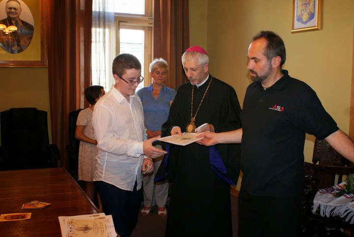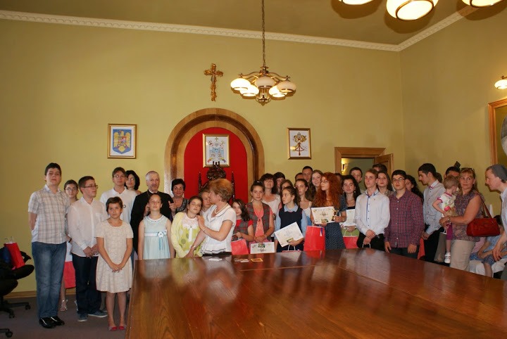 Sala de şedinţe a Episcopiei Greco-Catolice din Cluj-Napoca a găzduit un moment festiv în după-amiaza de miercuri, 11 iunie 2014, când PS Florentin Crihălmeanu, Episcopul de Cluj-Gherla, împreună cu pr. Călin Sechelea, consilier eparhial cu învăţământul religios şi cateheza, au răsplătit elevii şcolilor din Cluj-Napoca şi Gherla, care au obţinut locuri fruntaşe la Olimpiada de Religie Greco-Catolică, faza pe Eparhie, faza judeţeană şi cea naţională. La momentul de premiere a participat şi pr. Daniel Tintelecan, director al Liceului greco-catolic "Inochentie Micu".