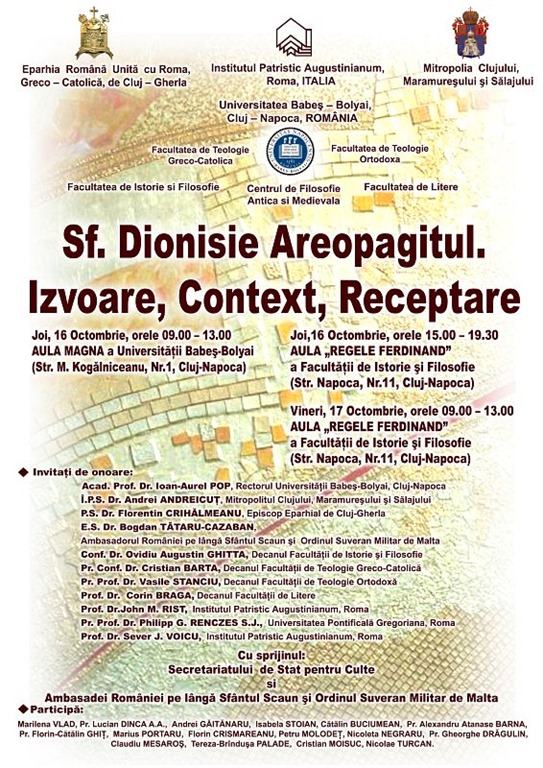 Conferinţe şi dezbateri pe teme patristice la Cluj – "Sf. Dionisie Areopagitul. Izvoare, context, receptare"