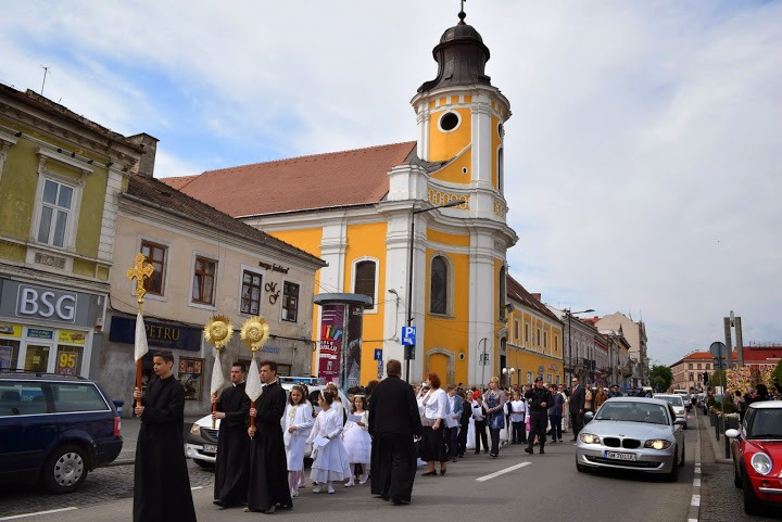 Cu sufletele curate şi în veşmânt de sărbătoare, sărbătoriţi de familiile lor şi de întreaga Biserică, înainte de Sfânta Liturghie, cei 48 de copii au pornit de la Catedrala Schimbarea la Faţă, de pe B-dul Eroilor, nr. 10, şi s-au îndreptat spre Catedrala în construcţie din Piaţa Cipariu, mergând în procesiune prin oraş, un drum al bucuriei şi o mărturisire publică a credinţei lor. Au fost primiţi apoi şi invitaţi în primele rânduri, în Capela Sf. Iosif unde, în fiecare duminică şi zi de sărbătoare, parohia Andrei Mureşanu afiliată capelei are în programul liturgic o Sfântă Liturghie dedicată în primul rând copiilor.