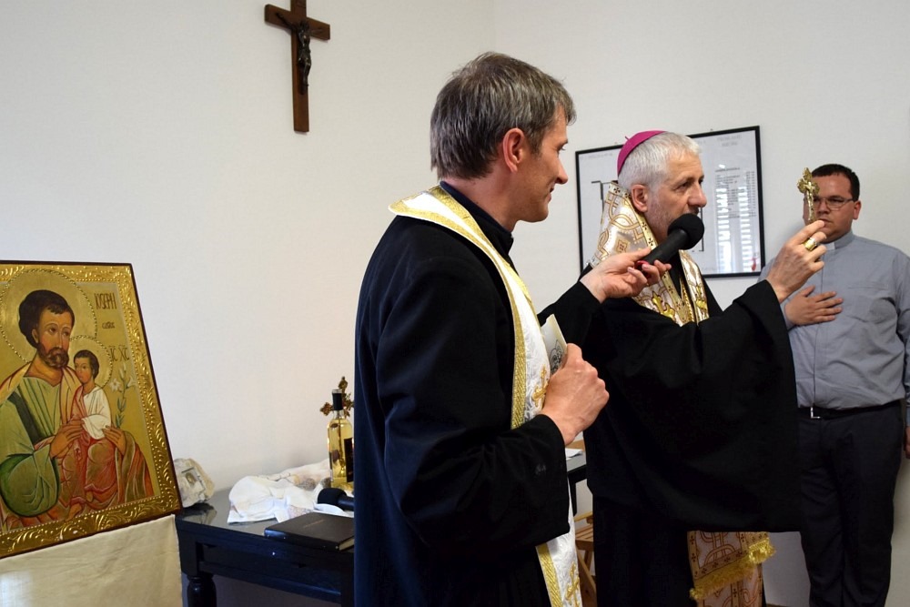 A urmat un nou moment de rugăciune, în timp ce PS Florentin a binecuvântat cu apă sfinţită "casa vie a lui Dumnezeu" – pe toţi credincioşii şi preoţii prezenţi, cei ce vor da viaţă de acum înainte şi acestui spaţiu, dezvoltând un nou centru socio-educativ – un oratoriu, unde copiii sunt aşteptaţi să înveţe şi să se joace, adulţii să se întâlnească la diferite activităţi parohiale, sărbători, onomastici, să se cunoască şi susţină unii pe alţii, în acea comuniune a iubirii pe care Isus o cere: "Poruncă nouă dau vouă: Să vă iubiţi unul pe altul. Precum Eu v-am iubit pe voi, aşa şi voi să vă iubiţi unul pe altul. Întru aceasta vor cunoaşte toţi că sunteţi ucenicii Mei, dacă veţi avea dragoste unii faţă de alţii" (Ioan 13,34-35). Seara s-a încheiat printr-o agapă fraternă în curtea împodobită cu flori şi mult spaţiu verde.