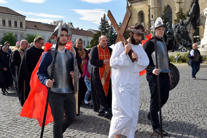 Calea crucii a milostivirii cu tinerii greco-catolici, prin centrul municipiului Cluj-Napoca