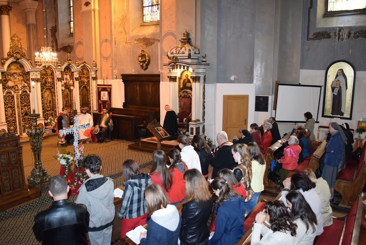 Intrând în Catedrală, toți participanții la acest traseu spiritual au primit mici cruci de hârtie pe care le-au fixat apoi pe o cruce mare de lemn amplasată în fața Sf. Altar. Procesiunea s-a încheiat printr-un timp de rugăciune în biserică, cu meditarea, de către tineri, a stațiunilor Căii Crucii – rugăciunea în amintirea Patimilor Domnului, a răstignirii și a morții Sale pe Cruce pentru mântuirea sufletelor noastre. În încheiere, pr. vicar Ioan Mătieș, președintele Asociației UCR, a rostit câteva cuvinte despre semnificația acestui traseu al Căii Crucii a Milostivirii, pornind de la un citat din meditația de la stațiunea a 8-a: «iată, toată Evanghelia, de la început până la sfârșit este o milostivire care mută muntii deznădejdii noastre și ne duce cu ea spre aurora veșnică a Spiritului Sfânt». Părintele a continuat, spunând: "Aici, în Calea Crucii, în Jertfa lui Isus pe Cruce, întâlnim această milostivire a lui Dumnezeu, manifestată prin Isus Cristos, Fiul Său și, de aceea, aș vrea să-I mulțumim în seara aceasta, să-I mulțumim lui Dumnezeu pentru toate dragostea plină de milostivire pe care a revărsat-o din plin peste noi. Îi mulțumim pentru că ne-a adus mântuire.