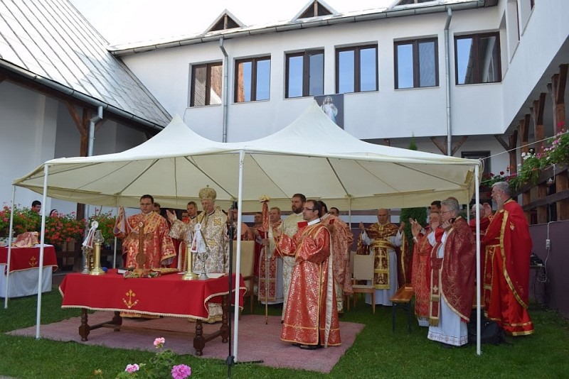 Sfânta Liturghie a sărbătorii a fost celebrată în curtea Mănăstirii Sfintei Cruci, de către PS Florentin, alături de care au concelebrat pr. Mihai Todea, Vicar general; pr. Laurențiu Biriș, protopop de Dej; pr. Alexandru Hruban, protopop de Gherla; pr. Călin Bot, rector al Seminarului Teologic eparhial; și zeci de preoți și călugări – între care doi oaspeți, preoți OSBM din Ucraina sosiți de la Roma, pr. Robert OSBM și pr. Timotei OSBM. Răspunsurile liturgice au fost date de studenți ai Seminarului Teologic eparhial "Sf. Ioan Evanghelistul" din Cluj-Napoca.