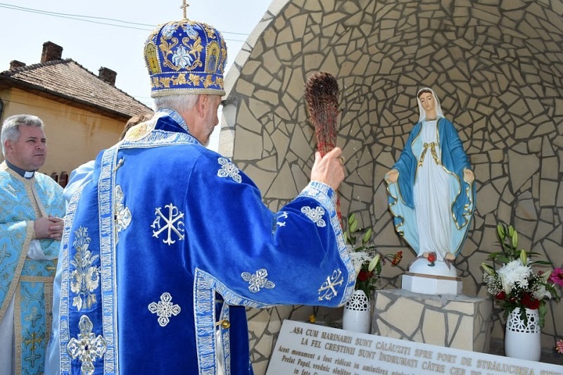 Sf. Liturghie a fost urmată de un parastas de pomenire și de binecuvântarea grotei Sfintei Fecioare, în memoria părintelui Tiberiu Marțian, cu smerită rugăciune, "ca Bunul Dumnezeu să îi dăruiască harurile de care are nevoie și, din lumina în care s-a înălțat, să se roage și pentru noi, cei care mai avem de mărturisit aici pe pământ până la a dobândi adevărata libertate a fiilor lui Dumnezeu" – a spus Preasfinția Sa. La baza grotei ce străjuiește biserica greco-catolică din vechea cetate a lui Gelu – Dăbâca, stă scris: «așa cum marinarii sunt călăuziți spre port de strălucirea stelelor, la fel creștinii sunt îndrumați către cer de Maica Domnului». "Acest monument a fost ridicat în amintirea părintelui greco-catolic Marțian Tiberiu-Lazăr (1922-2003), prelat papal, vrednic slujitor în ogorul Bisericii, eminent fiu al acestui iubit și binecuvântat plai, în fața casei sale memoriale din comuna natală, devenită în prezent Casă parohială. Dăbâca, 12 august 2017."