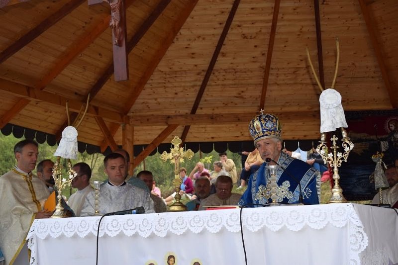 În dimineața sărbătorii Adormirii Maicii Domnului, marți, 15 august, PS Florentin a celebrat la altarul improvizat în curte, Sfânta Liturghie Arhierească, împreună cu câteva zeci de preoți concelebranți, răspunsurile liturgice fiind date de corul greco-catolic din Gherla. "Îi mulțumim lui Dumnezeu pentru acest loc binecuvântat de pelerinaj, care, încă din 1712, primea mii și zeci de mii de pelerini" – a început PS Florentin cuvântul de învățătură, reamintind motivele celebrării: "atât pentru ritul bizantin cât și pentru ritul latin se celebrează Adormirea Maicii Domnului și mutarea ei cu trupul și cu sufletul la ceruri. Punem această sărbătoare și sub semnul centenarului de la Fatima. Al doilea motiv de sărbătoare și de bucurie pentru care suntem aici, este chemarea Episcopului nostru de vrednică memorie, Iuliu Hossu, care, la încheierea pelerinajelor la Nicula, spunea întotdeauna, ca și în memorabilul an 1945: «Vă aștept ca și în alte dăți, vă aștept la Mănăstirea sfântă a Niculei, să o cinstim pe Preasfânta Maică a noastră, Maria». Răspundem astăzi acestei invitații prin pelerinajul nostru, răspundem chemării Arhiereului nostru, pe care sperăm să-l vedem cât de curând ridicat la cinstea altarelor. În al treilea rând, bucuria care ne unește la picioarele Preasfintei Fecioare Maria de la Nicula este și hirotonirea unui tânăr diacon, întru preot – momentul în care Biserica își naște un nou fiu întru slujire, care răspunde astăzi, după modelul Preasfintei Fecioare Maria: «Fie mie după cuvântul tău»."