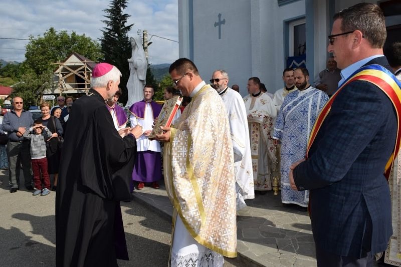 La final, PS Florentin, în semn de mulțumire, a oferit părintelui paroh aceleași însemne, precum și o mică statuie a Preasfintei Fecioare Maria de la Fatima. Mici atenții – rozarii, arma de luptă împotriva răului – au fost oferite și familiei părintelui paroh, soției Elena și celor trei fete. Cum se obișnuiește în ziua sfințirii bisericii, credincioșii au fost invitați să intre în altar și să sărute masa altarului, "să se împărtășească din binecuvântarea coborâtă din cer asupra acestui locaș și implicit asupra tuturor credincioșilor".