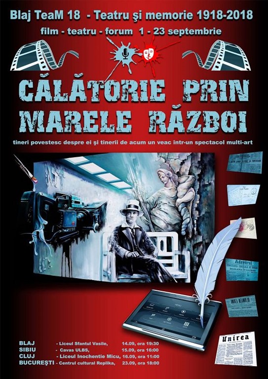 Un spectacol realizat împreună cu elevii Liceului Sfântul Vasile cel Mare și a Colegiului Inocențiu Micu Clain din Blaj. Protagoniști vor fi: Ioana Bogdan, Sonia Moșneag, Miruna Rotar, Cristian Benchea, Alexandru Maier, Ovidiu Cătălin Oltean, Sebastian Popescu, cu participarea actorilor Florin Kevorkian, Alin Turcu și Bogdan Tălmaciu, Alexandra Anușcă, voce și univers sonor propus de percuționistul francez Francesco Agnello".