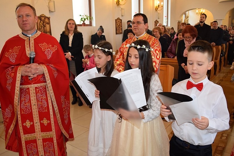 Celebrarea a avut loc în prezența Episcopului eparhial de Cluj-Gherla, PS Florentin Crihălmeanu, iar binecuvântarea sa a dat sărbătorii un caracter solemn, o acreditare a meritelor acestei generoase familii a Bisericii, care an de an își sărbătorește Sfântul ocrotitor și mijlocitor, pe blândul Sfânt Iosif, și an de an are mai mult de oferit lui Dumnezeu. Rodul adus la altar, au fost copilașii, zeci de copii care au animat și însuflețit Liturghia. Între ei, cei dintâi în această zi, cei mai curați și în alb învesmântați, au fost Daniela, Andreea și Darius, care au primit din mâna Preasfințitului Prima Sfântă Împărtășanie, după împlinirea celor rânduite și rostirea, în fața Arhiereului și a credincioșilor, a profesiunii de credință.