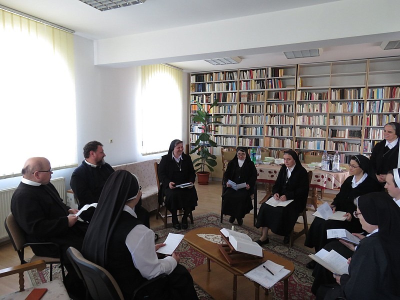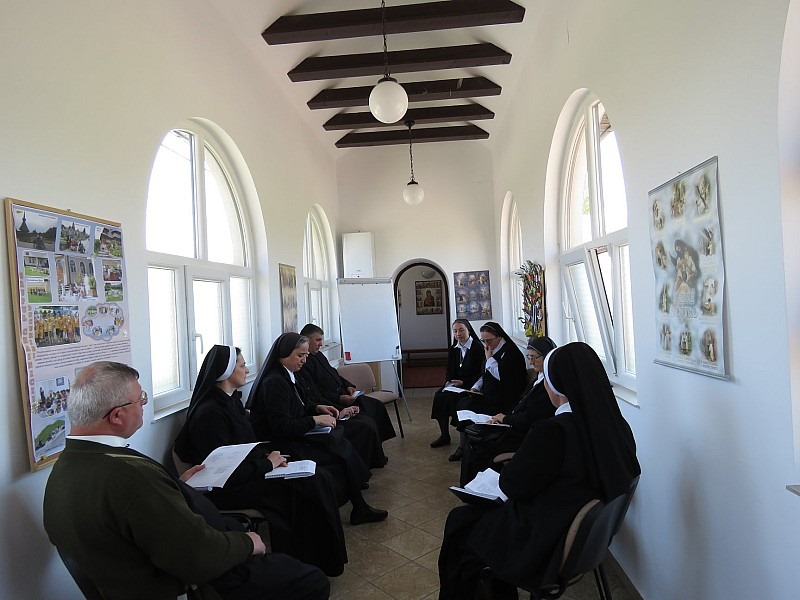 La această întâlnire pr. Marius Talos SJ, plecând de la documentul Congregației pentru Institutele de Viață Consacrată și Societățile de Viață Apostolică ce are ca titlu Pentru vin nou burdufuri noi (2014) și de la Exortația Apostolică Vita Consecrata (1996), a propus participanților o reflecție actuală profundă asupra modului în care persoanele consacrate sunt chemate să trăiască principalele dimensiuni ale consacrării: viața de rugăciune, viața de comunitate și misiunea. A urmat munca în grupuri mici, fiecare grup având o sarcină precisă, cu scopul de a aduce cât mai aproape de realitatea pe care o trăiește, învățătura și îndemnurile Bisericii. În cea de a doua parte a zilei, grupurile s-au reunit în plen pentru a pune în comun aspectele cele mai semnificative care au reieșit din împărtășirea pe grupuri. Programul s-a încheiat cu rugăciunea Acatistul Maicii Domnului, celebrată de pr. Cristian David, capelanul Mănăstirii Maicii Domnului.