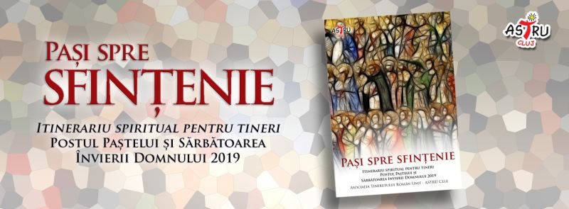 ASTRU Cluj – așa cum a făcut și în anii precedenți – a pregătit pentru perioada Postului Mare și a Sărbătorii Învierii Domnului un itinerariu spiritual adresat tinerilor și nu numai, pentru a-i ajuta să se apropie de Cuvântul lui Dumnezeu, pregătindu-se astfel pentru marea sărbătoare a Învierii Domnului. "Pași spre sfințenie" – este un itinerariu spiritual prin care ne propunem să dăm un imbold tinerilor în a descoperi ce stă în spatele acțiunilor pe care le desfășoară zi de zi, mai ales în acest timp al postului.
