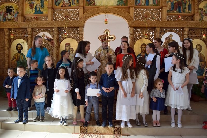 A avut loc mai întâi un mic concert al corului celor mici, care au cântat Domnului și totodată s-au bucurat să fie ascultați și aplaudați de PS Florentin, de preoții și credincioșii prezenți. În partea a doua a programului, pe rând, copii talentați au interpretat piese muzicale la diferite instrumente: pian, flaut, chitară. Ei au cântat și au încântat auditoriul iar de la Preasfinția Sa au primit la final binecuvântări și iconițe, în timp ce fetițele care s-au întâlnit în sufletele lor pentru prima dată cu Isus Euharisticul au primit diplome de amintire de la Prima Împărtășanie și cărți de rugăciune și alte daruri din partea parohiei în care s-au pregătit și au pornit pe drumul vieții spirituale. O agapă fraternă a fost la final ocazia împărtășirii bucuriei de a fi și a merge împreună, în lumina acestei duminici însorite de primăvară.