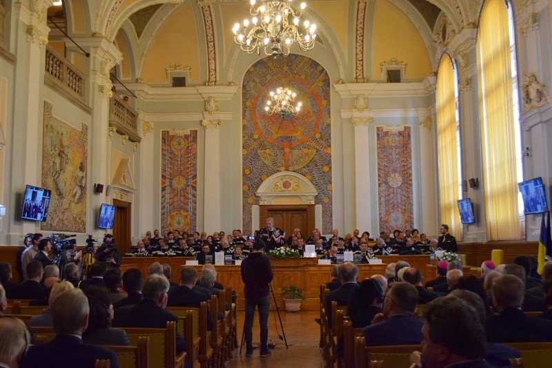 Între cele 21 de Facultăți ale Universității clujene se numără și Facultatea de Teologie Greco-Catolică cu cele trei departamente: Blaj, Cluj și Oradea – pr. prof. dr. Cristian Barta, decanul acestei facultăți era de asemenea de față -, precum și Facultățile de Teologie Romano-Catolică, Ortodoxă și Reformată. Universitatea Babeș Bolyai, cu sediul central simbolic străjuit de grupul statuar al Corifeilor Școlii Ardelene – Samuil Micu, Gheorghe Șincai și Petru Maior (situat în fața intrării principale), spațiu spiritual în care domeniile cunoașterii umane își dau mâna unele cu altele spre formarea și îndrumarea tinerelor generații, prin prezența facultăților de profil teologic ancorate în credință ating și "mâna" lui Dumnezeu dătătoare de har și binecuvântare.