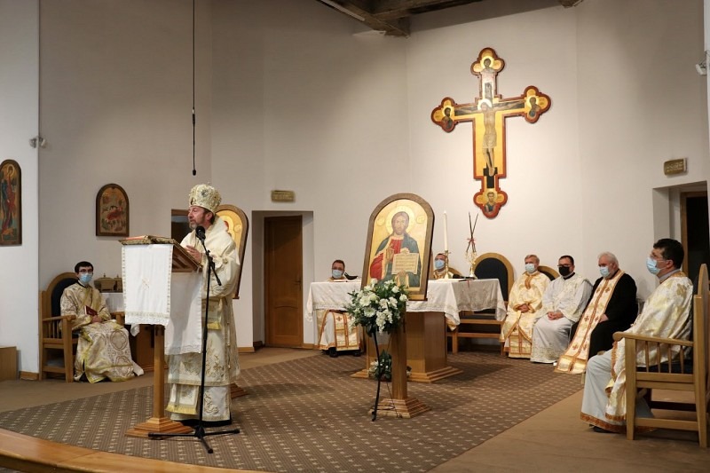 Liturghia a fost pontificată de către Preasfinția Sa PS Claudiu, Episcopul de Cluj-Gherla, având alături pe pr. Cristian Barta, decan al Facultății de Teologie Grego-Catolică, pr. Marius Cerghizan, Vicar general, preoți cadre universitare – pr. Florin Bozântan, pr. Cristian Langa și pr. Marius Furtună, rector al Seminarului Teologic Eparhial „Sf. Ioan Evanghelistul”. Diaconi au fost dc. Marius Cîmpean și dc. Vlăduț Pupăză. Răspunsurile liturgice au fost oferite de studenții seminariști.