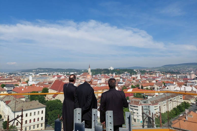 La orele dimineții, condus de Preasfinția Sa Claudiu, Episcopul de Cluj-Gherla, Înaltul Prelat a vizitat Catedrala greco-catolică în construcție din Piața Cipariu. Eminența Sa Cardinalul Leonardo Sandri a fost însoțit de Excelența Sa Miguel Maury Buendia, Nunțiu Apostolic în România și Republica Moldova și de subsecretarul Congregației pentru Bisericile Orientale, don Flavio Pace.