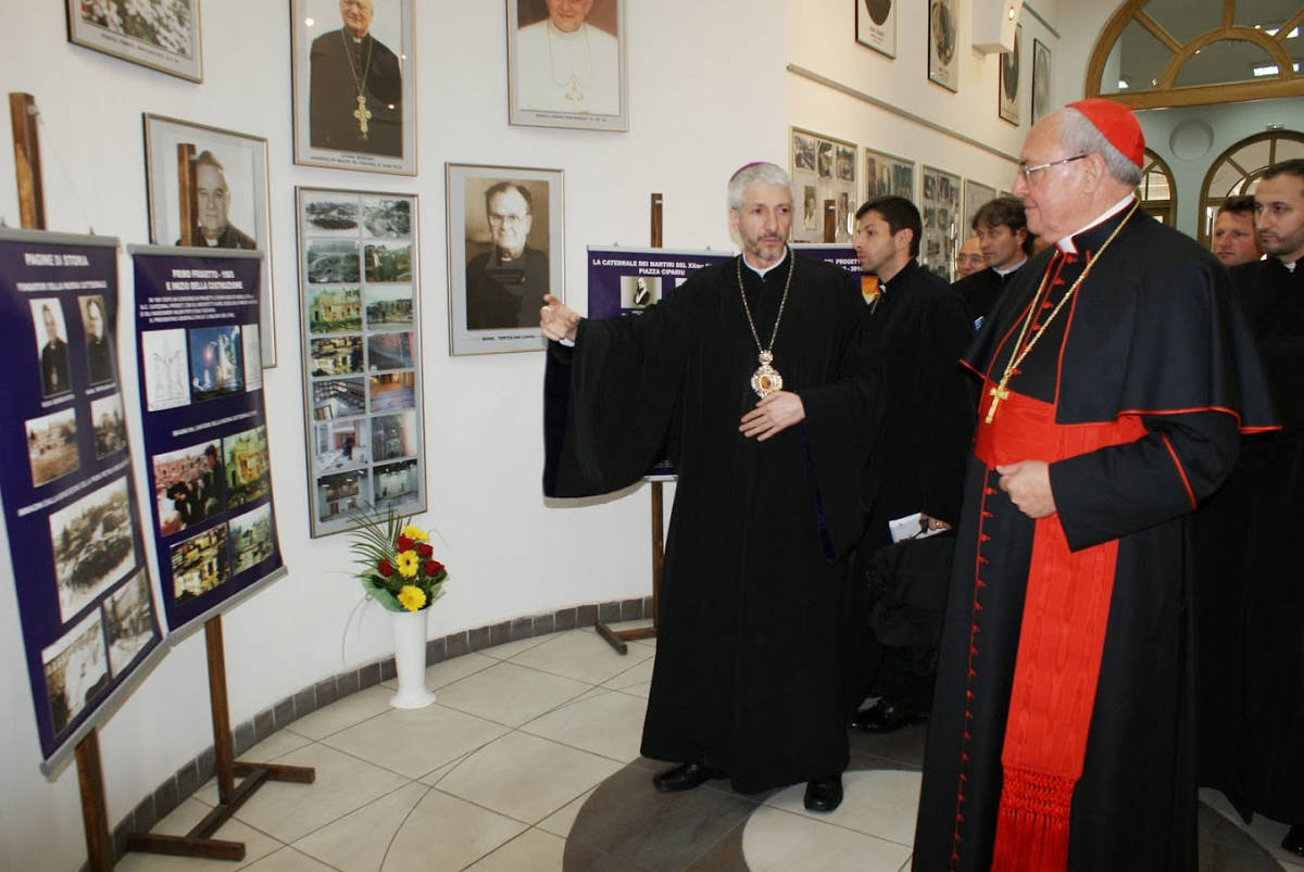 În urmă cu 12 ani, la 10 mai 2010, Eminența Sa Cardinal Leonardo Sandri era condus de către Preasfințitul Episcop Florentin prin Catedrala dedicată „Martirilor și Mărturisitorilor sec. al XX-lea” din Piața Cipariu. Acum, la 2 iunie 2022, Preasfinția Sa Claudiu l-a primit și condus pe Cardinalul prefect al Congregației pentru Bisericile Orientale prin Catedrala care, față de etapa de construcție din 2010 s-a înălțat cu peste 30 de metri pe verticală. Astfel, la 2 iunie 2022, în Sărbătoarea Fericiților Episcopi martiri greco-catolici români, Eminența Sa Leonardo Sandri a putut privi panorama orașului Cluj-Napoca de la înălțimea cupolei Catedralei. Și, din nou, a vizitat holul expozițional unde se află istoria în imagini a Eparhiei de Cluj-Gherla și a salutat prezența Domnului într-un popas în capela „Sf. Iosif”.