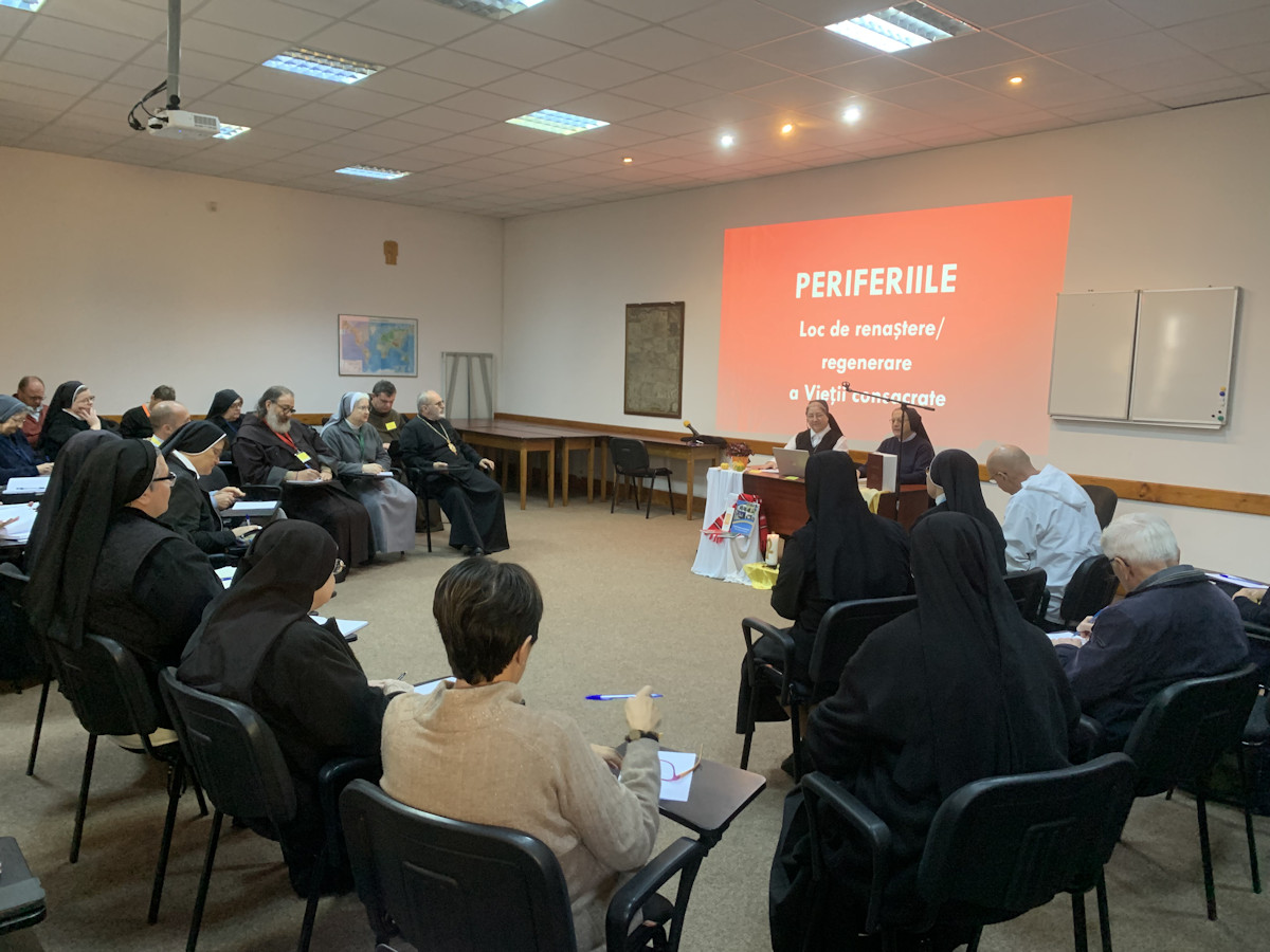 În zilele de 22-24 octombrie a.c., la Centrul Manresa al iezuiților din România, a avut loc cea de-a X-a întâlnire formativă comună a celor două Conferințe a Superiorilor și a Superioarelor Majore din România XXXIV, cu tema: „Periferiile, spațiul preferat al lui Dumnezeu – loc de regenerare a vieții consacrate”. Încă de la început, ne-am bucurat de prezența Excelenței Sale, Înaltpreasfințitul Giampiero Gloder, Nunțiu Apostolic în România și Republica Moldova, a Preasfințitului Claudiu Lucian Pop, Episcop al Eparhiei Greco-Catolice de Cluj-Gherla și a Preasfințitului Ioan Călin Bot, Episcop al Eparhiei Greco-Catolice de Lugoj și responsabil al Comisiei cu viața consacrată, din partea Conferinței Episcopilor Catolici din România.
