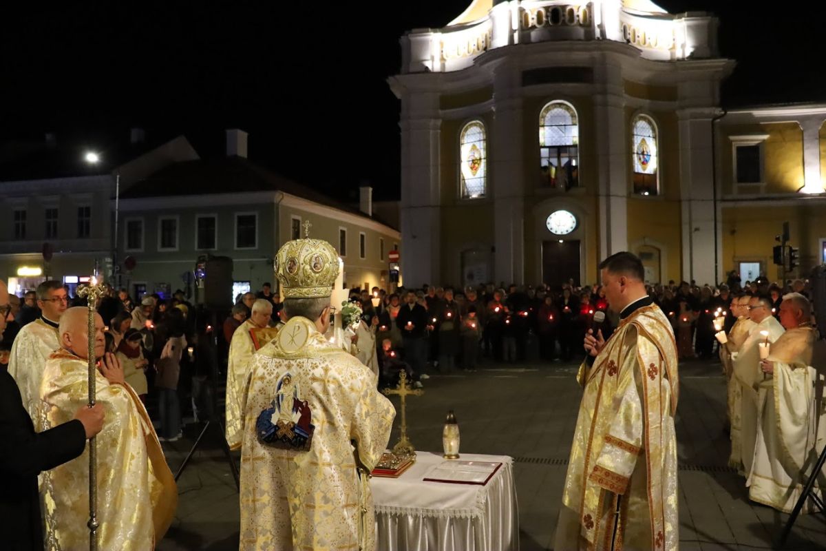 Ierarhul a pus acest moment în contextul actual istoric, amintind rugăciunea pentru pace din această seară, pe care Sfântul Părinte Leon al XIV-lea a făcut-o, din Vatican, în comuniunea Bisericii Universale și a tuturor celor ce au răspuns apelului său. A adăugat: „Avem un gând de rugăciune cu totul deosebit în această noapte sfântă pentru făcătorii de pace, din lumea întreagă, din familiile noastre, din societate, pentru cei bolnavi, pentru cei care suferă pe paturile de spitale, în orfelinate, în case de bătrâni, pentru cei care sunt singuri, pentru cei care nu au cui să spună că sunt singuri, pe toți îi avem în rugăciunile noastre și Îl rugăm pe Domnul Isus cel Înviat să îi mângâie pe fiecare”.