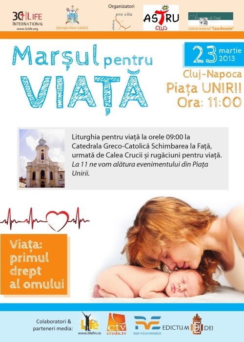 Sâmbătă, 23 martie 2013, de la ora 12.00, la Cluj-Napoca, va avea loc "Marşul Pentru Viaţa", acţiune cu caracter ecumenic, ce are loc simultan în mai multe oraşe, cu scopul [...]