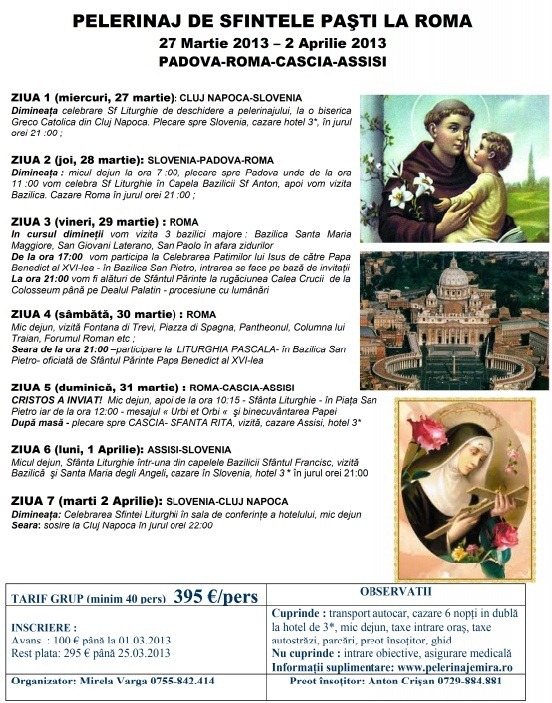 Cu ocazia Anului Credinţei, PS Florentin Crihălmeanu, Episcopul de Cluj-Gherla, a dat binecuvântarea pentru organizarea unui pelerinaj la Roma şi în alte sanctuare de rugăciune, pentru a oferi credincioşilor posibilitatea [...]