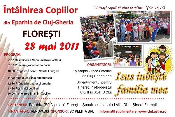 "Lăsaţi copii să vină la mine..." (Lc 18,16) Departamentul pentru tineret al Episcopiei de Cluj-Gherla şi Asociaţia ASTRU-Cluj, organizează pentru copiii din parohiile Eparhiei de Cluj-Gherla, o zi pe care [...]